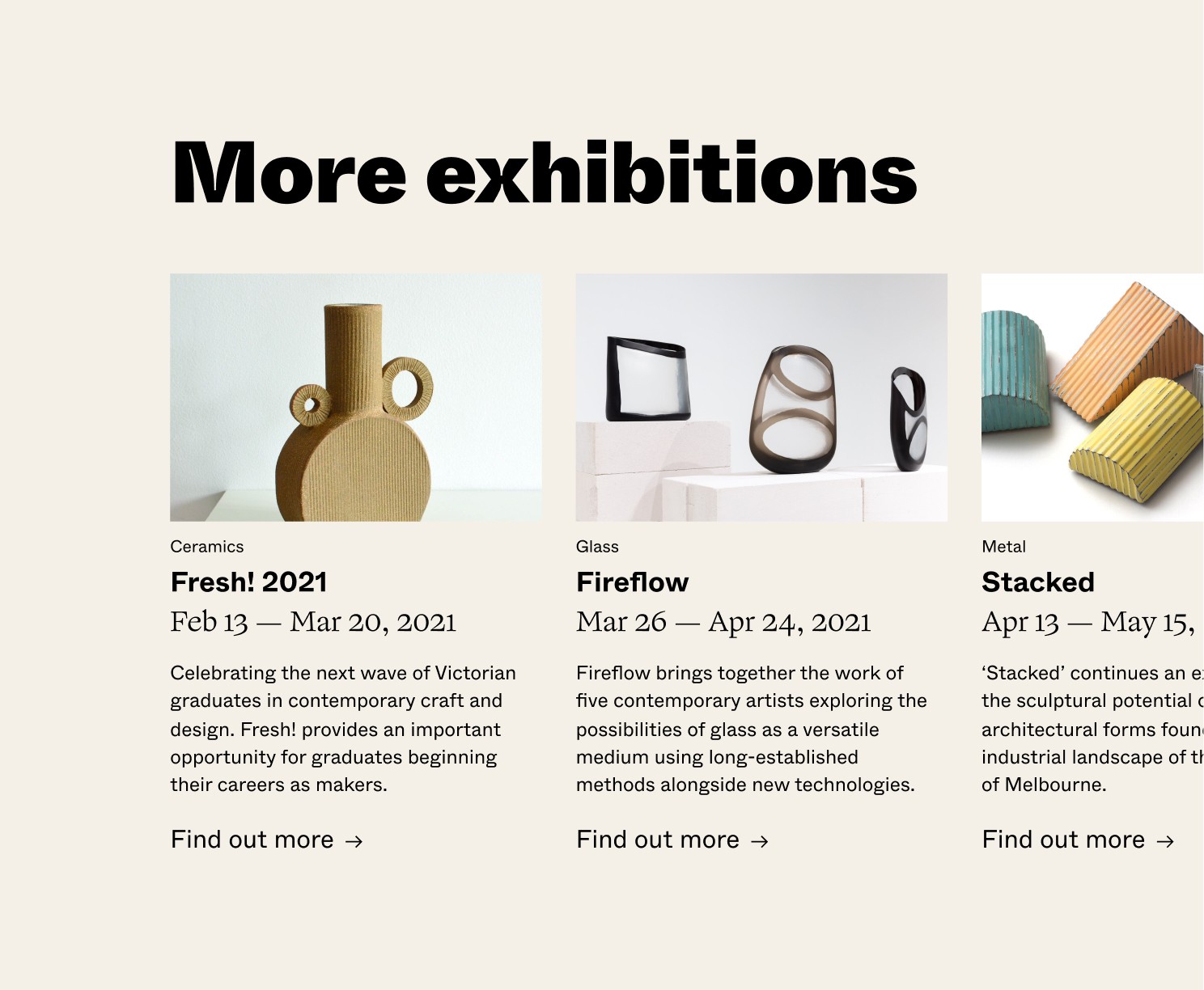 It’s been a pleasure working with Liquorice on Craft’s new website. At the beginning of this process, we were looking for a partner who would be creative, collaborative, and, importantly, energised by our organisation and what we do! From day one, the team at Liquorice proved to be brilliant collaborators with an eye for detail and the nuances of user experience. They took the time to understand the depth and richness inherent in contemporary craft practice and our organisation and programming, designing thoughtful UX and a clean and beautiful website. We are thrilled to celebrate this next chapter with a new platform that integrates our activities and provides support and opportunities to Australian makers and designers.