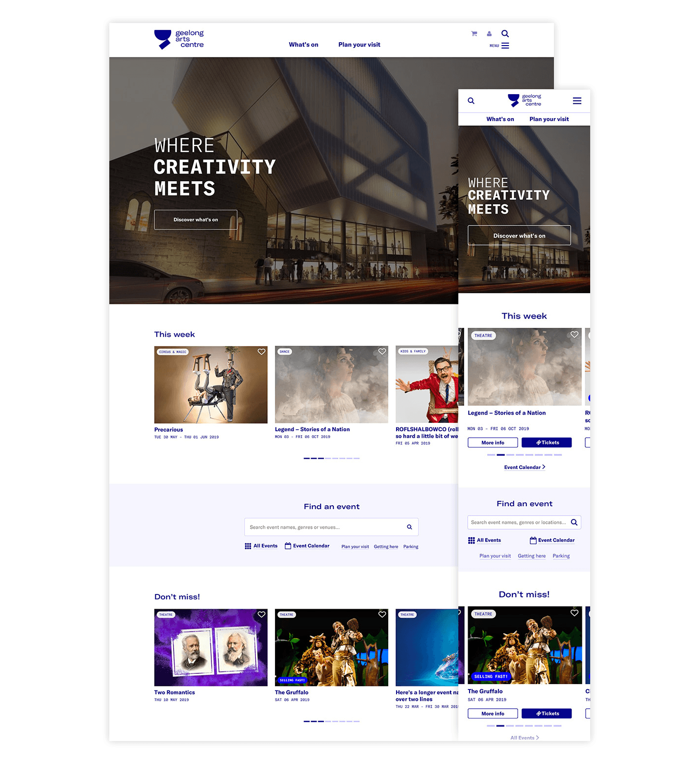 The new Geelong Arts Centre website launch coincided with the launch of the new brand and the completion of building upgrades. With more upgrades to come, the Arts Centre is set to be the place where creativity meets, today and well into the future.